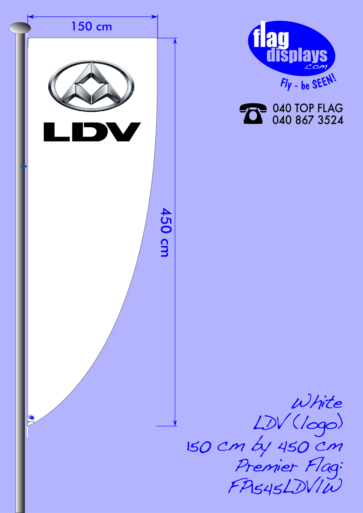Image Product Name: White, LDV Premier Flag Price AU$: Contact Us Available Size(s) | SKU: 150 cm x 450 cm | SKU: PDF Layout-White,LDV(logo),150x450cm,Premier,Flag.png Description: -